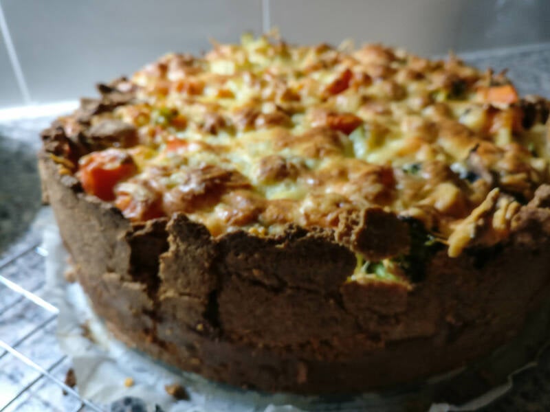 Hartige groentetaart die ik maak van allerlei groente die ik op dat moment in huis heb. Voor 1 grote taart of 6 kleine taartjes